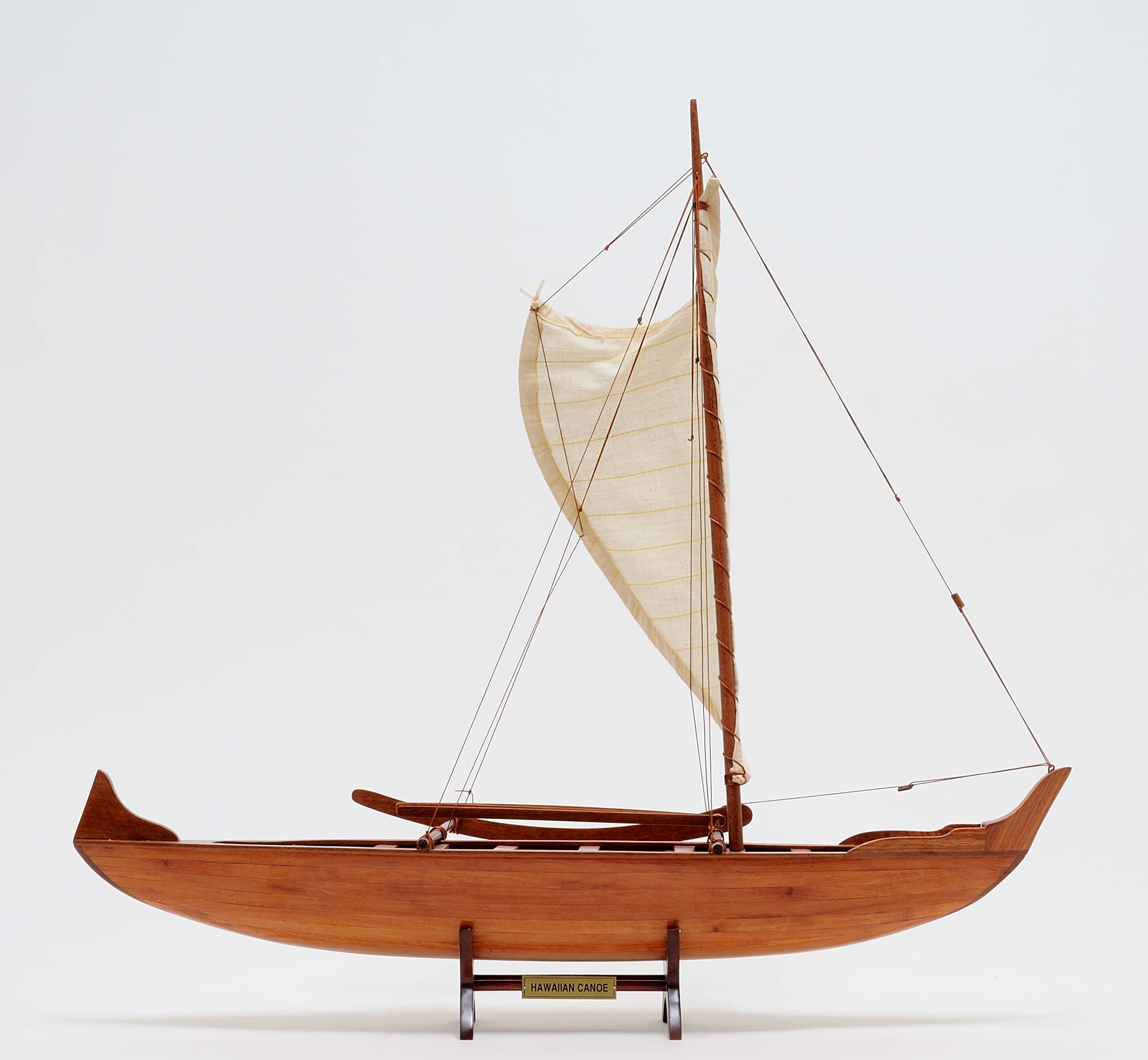 The Hawaiian Canoe from OMH is not an RC model, meaning that it does not require batteries or a remote control. Instead, this is meant to be displayed as a decorative piece, adding a touch of elegance to any room in which it is placed. Whether displayed on a bookshelf, mantel, or desk, this model boat is sure to be a conversation starter.