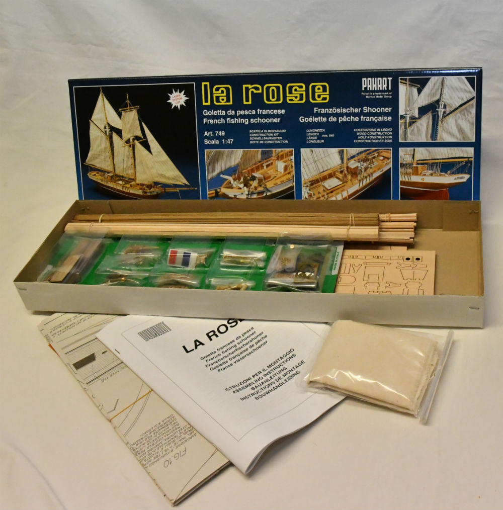 The La Rose Schooner model kit offered by Premier Ship Models contains all the pieces necessary to finish a perfectly accurate replica of the original French vessel. The kit has been manufactured by Mantua Models, a UK-based company. Mantua have a good reputation amongst model makers for using the latest technology and real ship plans to produce minutely detailed replica of a whole variety of different ships. If you would like to view other model kits by Mantua, please click here.